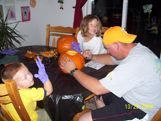 In the midst of the busy season we did manage to take a little time out to "celebrate" Halloween by carving pumpkins. The kids thought it was great fun to make a mess all over the kitchen table and squish around the pumpkin 'guts'. Jason, on the other hand, took a different approach to pumpkin carving this year....